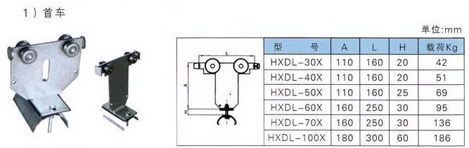 首車是攜纜臺車的牽引力,它通過其它運動體對它的撥動需帶動其后面臺車的運動,四個全封閉滾動軸承作為行走輪,滑動十分靈活,可用于灰塵較大的場合。